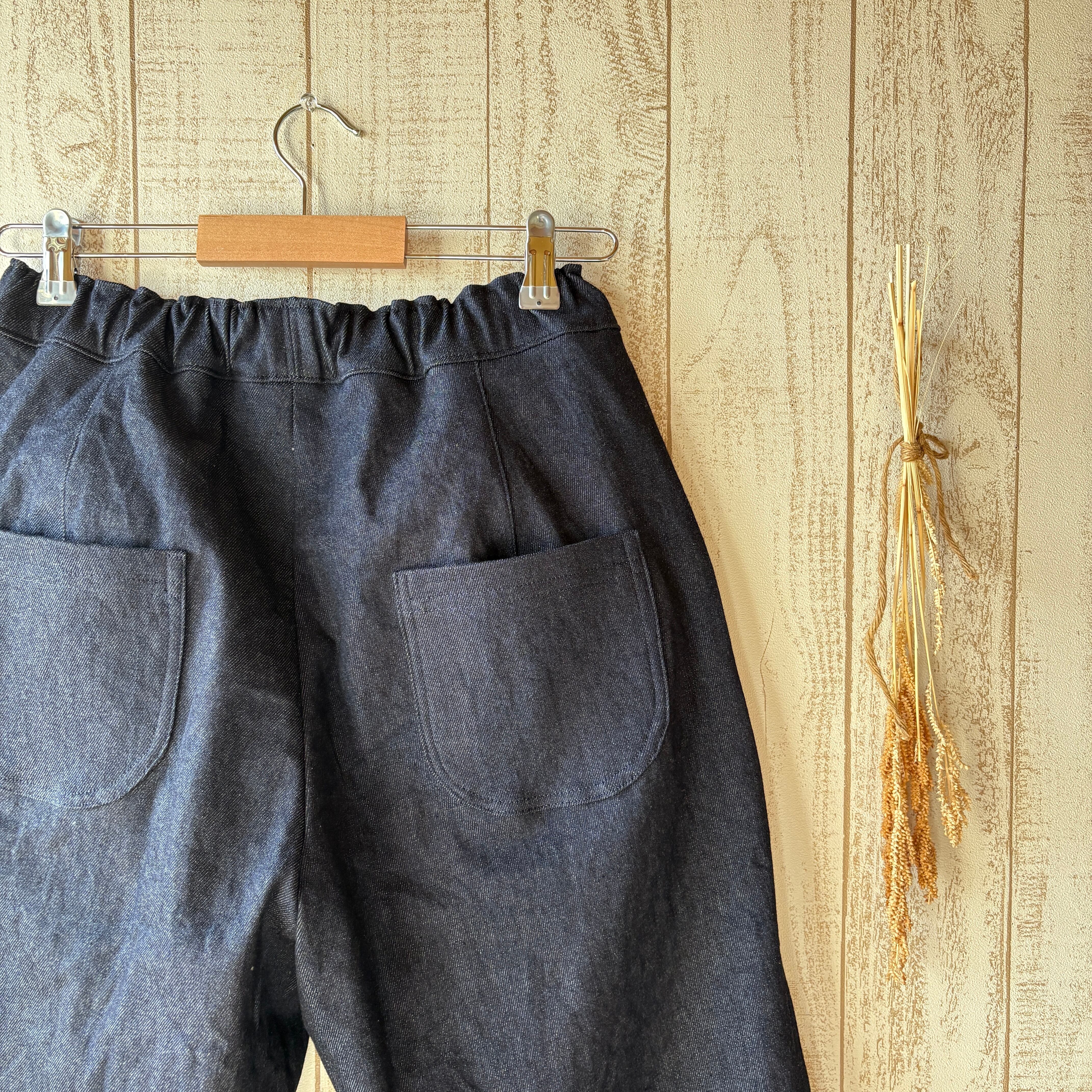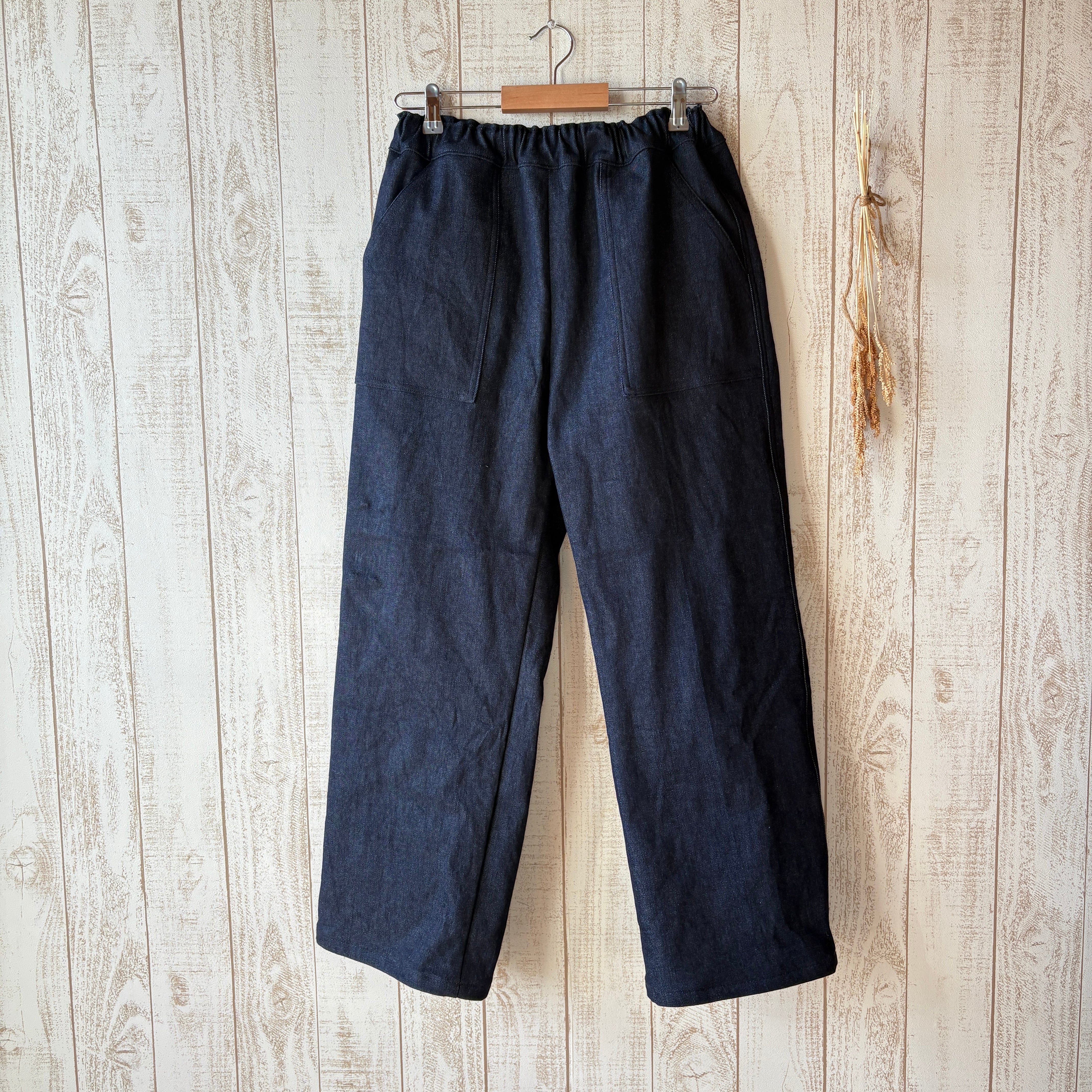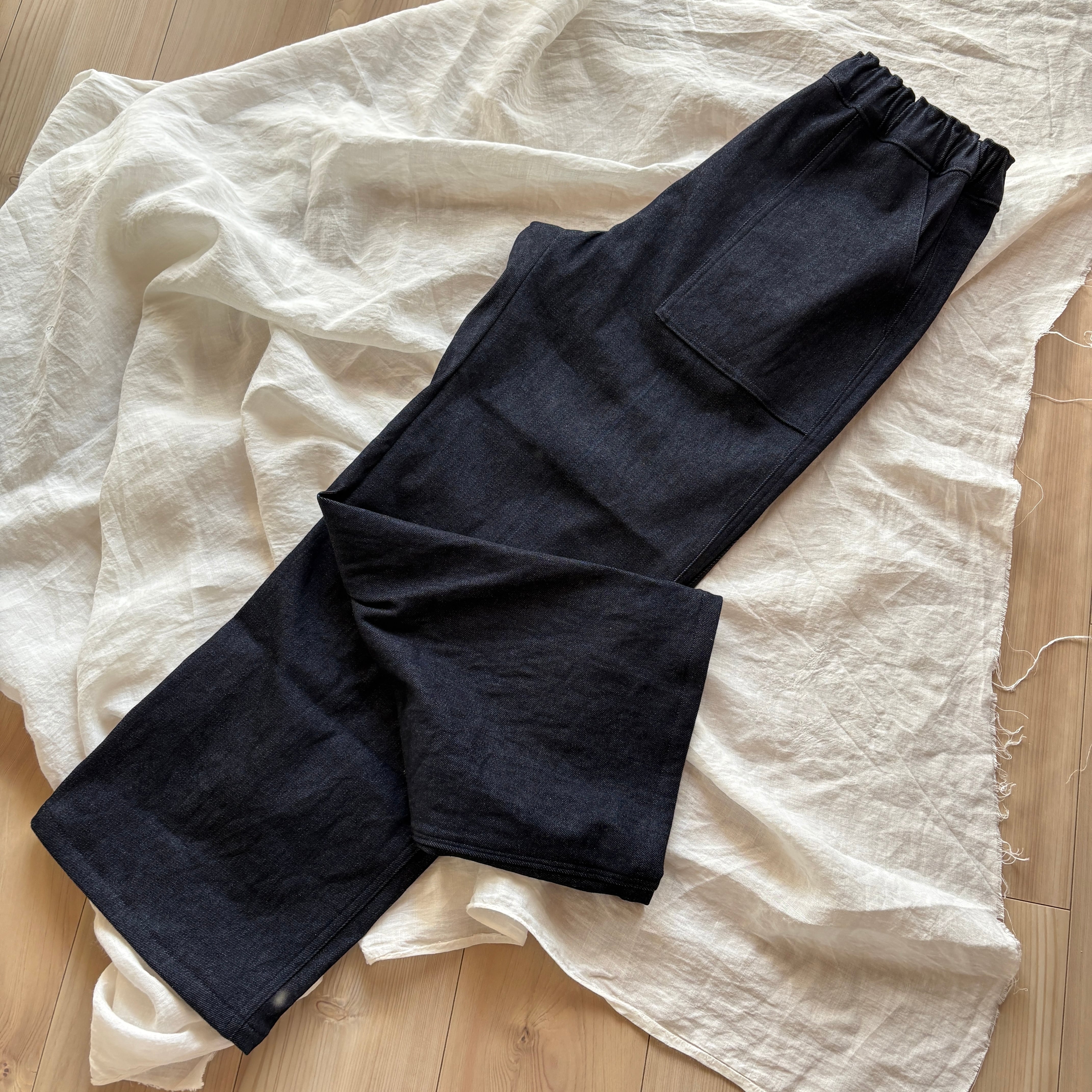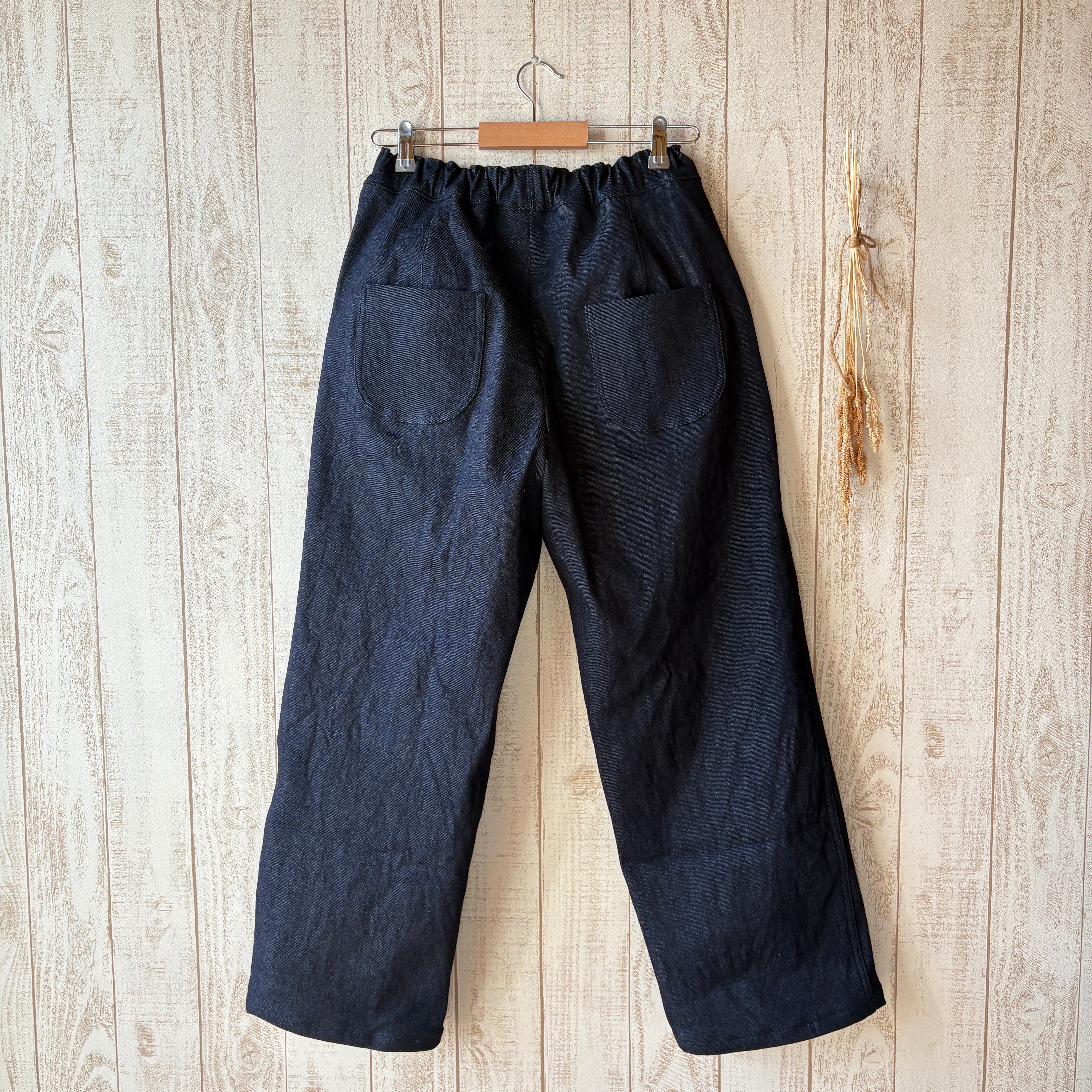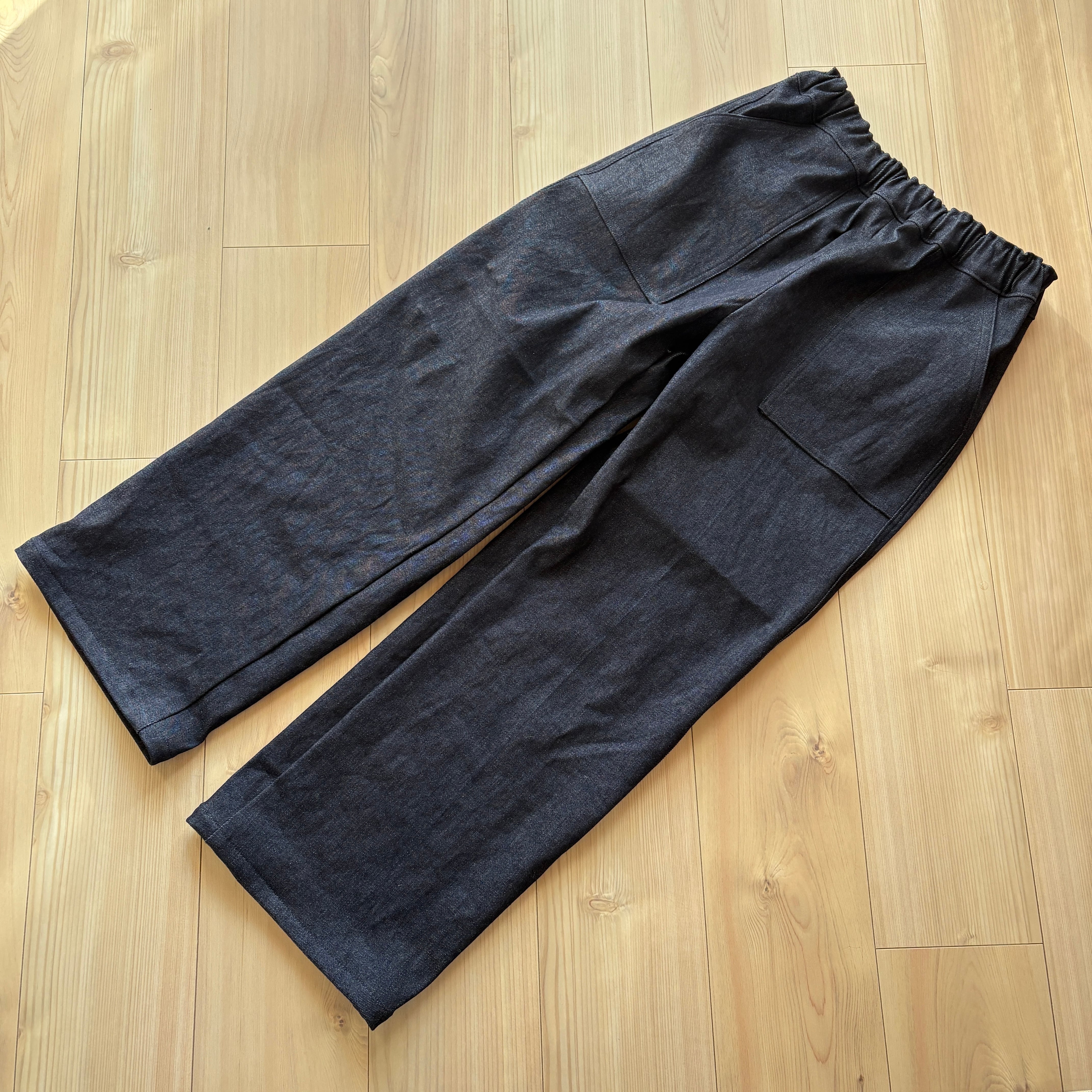 裏起毛のデニムでお仕立てしたワイドめのラフなパンツです